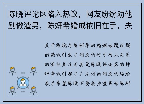 陈晓评论区陷入热议,网友纷纷劝他别做渣男,陈妍希婚戒依旧在手,夫妻关系究竟如何?