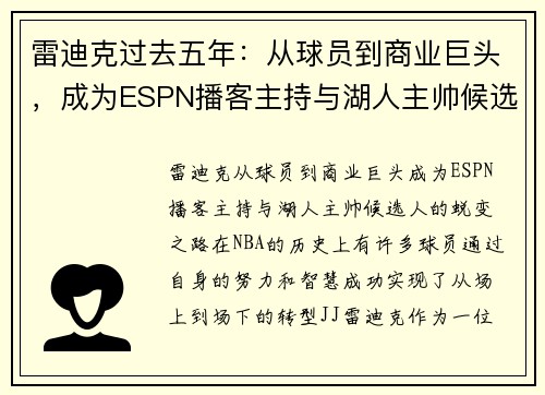 雷迪克过去五年:从球员到商业巨头,成为ESPN播客主持与湖人主帅候选人