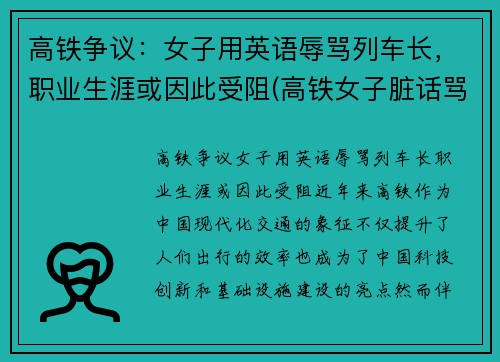高铁争议:女子用英语辱骂列车长,职业生涯或因此受阻(高铁女子脏话骂人)